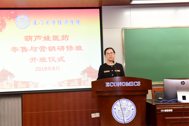 8月31日,万博医药零售与营销研修班开班仪式在厦门大学经济学院举行,为期8天的“厦大万博班”正式拉开帷幕。厦门大学经济学院继续教育中心主任廖景峰先生与万博药业集团董事长刘景萍女士分别在开班仪式上致辞,中国医药物资协会研究院执行院长代航先生担任本次研修班班主任并主持开班仪式。