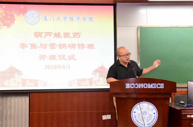 在开班仪式上,廖景峰主任首先代表厦门大学经济学院热烈欢迎万博医药零售与营销研修班的学员到厦大学习,并就厦门大学及经济学院的相关情况进行了介绍。他说,万博学员走进厦大就是厦大的校友,希望未来的日子能够关心、支持母校的发展,多提宝贵意见,同时他也祝大家在厦大学习期间学有所成、学有所获。